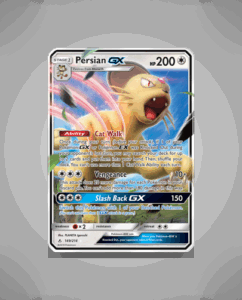 Persian-GX from the Unbroken Bonds set is a Rare Holo GX card with 200 HP. It features the ability Cat Walk and the attack Slash Back-GX. This sleek card is numbered 149 in the set.