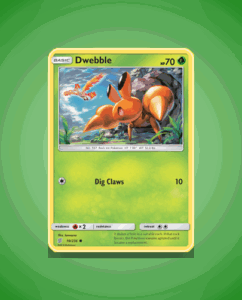 Dwebble is a Common Pokémon card from the Unified Minds set, numbered 10. It has 70 HP and features the attack Dig Claws. This card offers a straightforward addition to any collection.