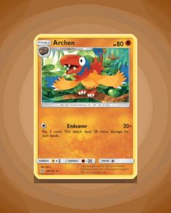 Archen is an uncommon Pokémon card from the Unified Minds set, numbered 120. It has a modest 80 HP and features the attack Endeavor. This card offers a straightforward addition to any collection focused on the set.