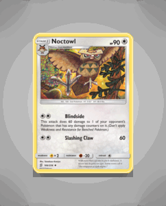 Noctowl from the Unified Minds set is an Uncommon card with 90 HP. It features the striking attack Slashing Claw, adding a dynamic edge to gameplay. This card is numbered 166 in the set, making it a notable addition for collectors.