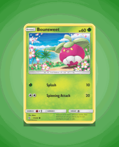 Bounsweet is a Common Pokémon card from the Unified Minds set, numbered 17. It has 60 HP and features the lively attack Spinning Attack. This card offers a straightforward addition to any collection.