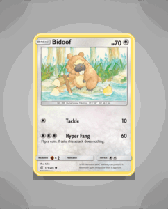 Bidoof from the Unified Minds set is a common card numbered 171 with 70 HP. This charming Pokémon features the straightforward attack Hyper Fang. Its simple design makes it an accessible choice for collectors and players alike.