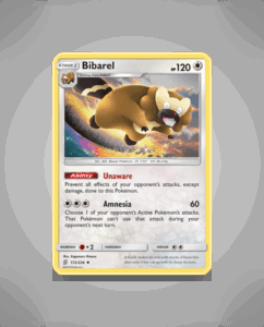Bibarel from the Unified Minds set is an uncommon Pokémon card with 120 HP. It features the ability Unaware and the attack Amnesia. This card is numbered 172 in the set.