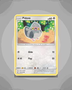 Pidove is a Common Pokémon card from the Unified Minds set, numbered 174. It has 60 HP and features the attack Flap. This modest card offers straightforward gameplay for collectors and players alike.