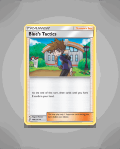 Blue’s Tactics is an uncommon Trainer card from the Unified Minds set. Numbered 188, it offers strategic value for players seeking versatile gameplay options. Its design reflects the calculated approach associated with the character Blue.