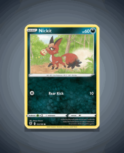 Nickit from the Astral Radiance set is a Common Pokémon card numbered 103. This lively card features 60 HP and a single attack called Rear Kick. Its straightforward design makes it a charming addition to any collection.