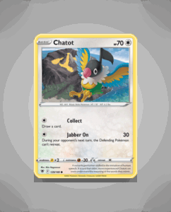 Chatot from the Astral Radiance set is a Common card numbered 129 with 70 HP. It features the distinctive attack Jabber On, adding a unique flair to its gameplay. This lively Pokémon offers collectors a straightforward yet engaging addition to their decks.