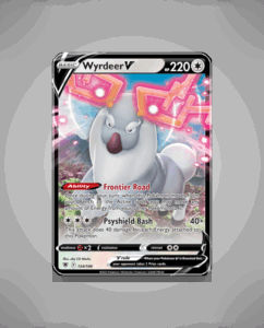 Wyrdeer V from the Astral Radiance set is a Rare Holo V card boasting 220 HP. It features the ability Frontier Road and the attack Psyshield Bash, combining defensive and offensive capabilities. This card is numbered 134 in the set.