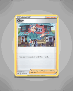 Choy is an uncommon card from the Astral Radiance set, numbered 137. Its design captures a unique aspect of the series, making it a distinctive addition for collectors. Despite lacking attacks or abilities, Choy holds a subtle charm within the set’s diverse lineup.