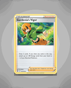 Gardenia’s Vigor is an uncommon card from the Astral Radiance set, numbered 143. This card features a vibrant design that captures the essence of Gardenia’s character. It offers collectors a unique addition without any attacks or abilities listed.