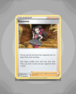 Roxanne is an Uncommon card from the Astral Radiance set, numbered 150. This character adds a distinctive touch to any collection with her unique design. Although she has no listed HP, ability, or attack, Roxanne remains a notable inclusion for fans of the set.