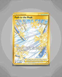 Path to the Peak is a Rare Secret card from the Astral Radiance set, numbered 213. Its striking design makes it a notable addition for collectors seeking unique cards from this series. This card stands out without featuring HP, abilities, or attacks.