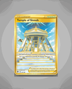 Temple of Sinnoh is a Rare Secret card from the Astral Radiance set, numbered 214. Its striking design captures the mystique of Sinnoh’s ancient ruins. This card is a notable addition for collectors seeking unique and elusive pieces.