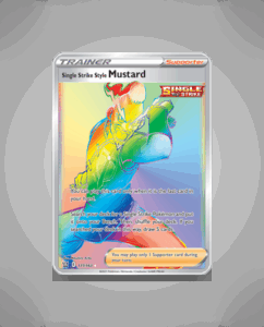 Single Strike Style Mustard is a Rare Rainbow card from the Battle Styles set, numbered 177. This vibrant card stands out with its striking design and unique style. It offers collectors a distinctive addition to their Battle Styles collection.