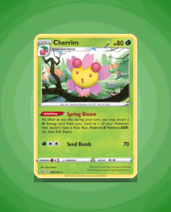 Cherrim from the Battle Styles set is a Rare Holo card numbered 8. It features a vibrant 80 HP and the unique ability Spring Bloom. Its attack, Seed Bomb, adds strategic value to gameplay. This card offers a lively addition to any collection.