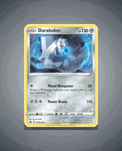 Duraludon from the SWSH Black Star Promos set boasts a solid 130 HP, making it a resilient choice. This Promo card features the striking attack Power Beam, adding strategic value. Its sleek design complements the dynamic energy of the Sword & Shield series.