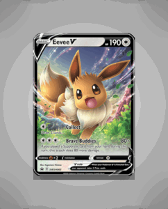 Eevee V from the SWSH Black Star Promos set features a solid 190 HP, making it a resilient choice for battles. This Promo card, numbered SWSH065, showcases the attack Brave Buddies, highlighting Eevee’s cooperative spirit. Its sleek design captures the charm of this versatile Pokémon.