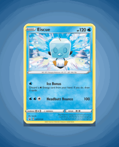 Eiscue from the SWSH Black Star Promos set features 120 HP and a single attack called Headbutt Bounce. This Promo card is a distinctive addition for collectors seeking unique Pokémon TCG pieces. Its straightforward design highlights Eiscue’s icy theme without additional abilities.