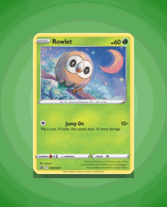 Rowlet from the SWSH Black Star Promos set is a charming Promo card with 60 HP. This card features the simple yet lively attack Jump On. Its modest design makes it a neat addition to any collection.