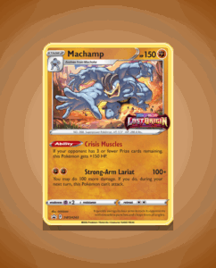 Machamp from the SWSH Black Star Promos set boasts a solid 150 HP, making it a resilient choice in battle. Its ability, Crisis Muscles, adds a strategic edge, while the attack Strong-Arm Lariat delivers powerful damage. This Promo rarity card is a notable addition for…