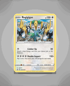 Regigigas from the SWSH Black Star Promos set is a striking Promo card with 150 HP. It features the powerful attack Double Impact, making it a notable addition for collectors. This card is numbered SWSH247 in the series.