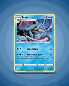 Tentacruel from the Evolving Skies set is an Uncommon card numbered 27. It boasts 120 HP and features the attack Poisonous Prison. This card offers a solid presence with its distinctive move.