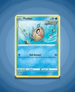 Feebas is a Common Pokémon card from the Evolving Skies set, numbered 37. It has a modest 30 HP and features the attack Flail Around. This card offers a simple yet charming addition to any collection.