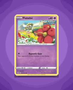 Flabébé from the Evolving Skies set is a delicate Common Pokémon with 40 HP. It features the intriguing attack Hypnotic Gaze, adding a subtle strategic element to gameplay. This charming card holds number 71 in the set.