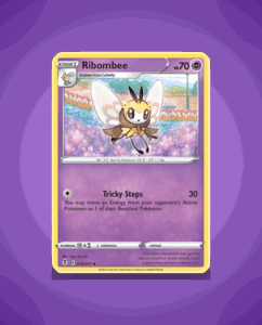 Ribombee from the Evolving Skies set is an uncommon card numbered 79. It features 70 HP and a distinctive attack called Tricky Steps. This lively Pokémon brings a unique flair to any collection.
