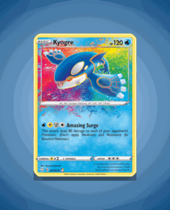 Kyogre from the Shining Fates set is a striking Amazing Rare card numbered 21. This Pokémon boasts 120 HP and features the dynamic attack Amazing Surge. Its vibrant design makes it a notable addition for collectors.