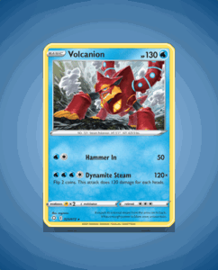 Volcanion from the Shining Fates set is a rare card numbered 25 with 130 HP. It features the powerful attack Dynamite Steam, showcasing its fiery strength. This striking card adds a dynamic edge to any collection.