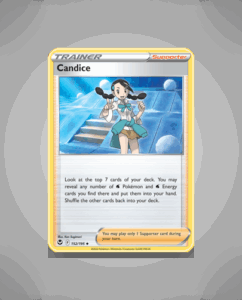 Candice is a Rare Ultra card from the Silver Tempest set, numbered 189. This character card stands out with its distinctive design and role within the collection. It offers collectors a unique addition without specific gameplay attributes listed.