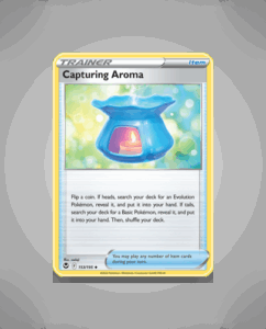 Capturing Aroma is an uncommon card from the Silver Tempest set, numbered 153. Its design and placement in the set make it a distinctive piece for collectors focusing on this series. Though it lacks HP, abilities, or attacks, its presence adds depth to the Silver…
