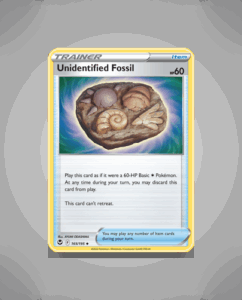 Unidentified Fossil is an uncommon card from the Silver Tempest set, numbered 165. Its mysterious nature adds an intriguing element to any collection. This card’s design captures the enigmatic allure of ancient Pokémon history.