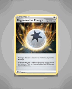 Regenerative Energy is an uncommon Trainer card from the Silver Tempest set. It carries the card number 168. This card adds strategic depth to any deck with its unique effect. Collectors will appreciate its place within the dynamic Silver Tempest lineup.