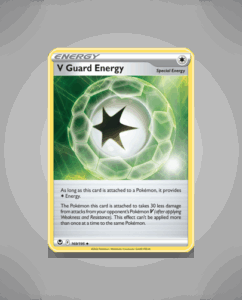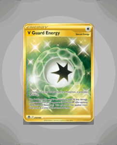 V Guard Energy is an uncommon card from the Silver Tempest set, numbered 169. This vibrant energy card adds strategic depth to your deck. Its distinctive design makes it a notable addition for collectors and players alike.