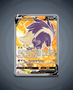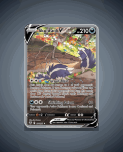Skuntank V from the Silver Tempest set is a Rare Ultra card numbered 181. This striking Pokémon boasts 210 HP and features the attack Shrieking Poison. Its bold design captures the essence of its potent abilities.