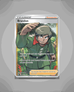 Brandon is a Rare Ultra card from the Silver Tempest set, numbered 188. This character card stands out with its distinct design and rarity level, making it a notable addition for collectors. Its inclusion in the set adds depth to the overall lineup.