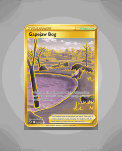 Gapejaw Bog is a Rare Secret card from the Silver Tempest set, numbered 213. Its striking design captures the eerie atmosphere of a murky swamp. This card is a notable addition for collectors seeking unique and elusive Pokémon TCG pieces.