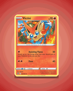 Victini from the Silver Tempest set is a rare card numbered 23. It features a vibrant 70 HP and a striking attack called Flare. This card’s design captures Victini’s energetic essence in a compact form.