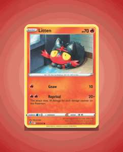 Litten from the Silver Tempest set is a common card numbered 30 with 70 HP. This fiery Pokémon features the attack Reprisal, adding dynamic potential to your deck. Its straightforward design makes it a solid choice for collectors and players alike.