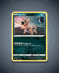 Sandile from the Vivid Voltage set is a common Pokémon card numbered 107. It has 70 HP and features the attack Dredge Up. This card offers a straightforward addition to any collection.