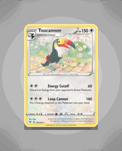 Toucannon from the Vivid Voltage set is a striking Rare card numbered 145. It boasts 150 HP and features the attack Loop Cannon, making it a solid choice for collectors and players alike.