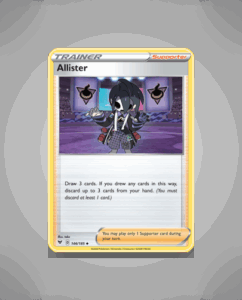 Allister is a character card from the Vivid Voltage set, numbered 146. This uncommon card adds a distinctive touch to any collection. Its design captures the essence of the set’s vibrant theme.
