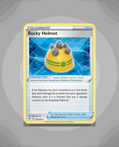 Rocky Helmet is an Uncommon Trainer card from the Vivid Voltage set. It carries the set number 159, making it a distinct piece for collectors. This card adds a rugged touch to any collection with its straightforward design.