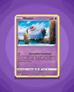 Woobat from the Vivid Voltage set is a common Pokémon card numbered 73. It has 60 HP and features the attack Unamplified Soundwave. This card offers a straightforward addition to any collection with its simple yet charming design.