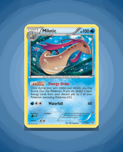 Milotic from the Flashfire set is a Rare Holo card numbered 23 with 100 HP. It features the elegant ability Energy Grace and the powerful attack Waterfall. This card combines a graceful design with solid gameplay potential.