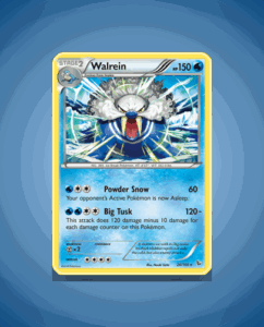Walrein from the Flashfire set is a rare card numbered 26 with 150 HP. This sturdy Pokémon features the powerful attack Big Tusk. Its solid presence makes it a notable addition to any collection.
