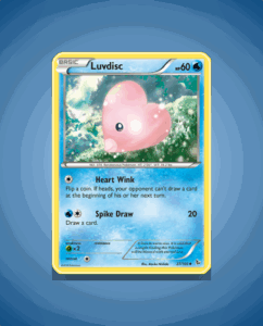 Luvdisc from the Flashfire set is an uncommon card numbered 27. It has a modest 60 HP and features the attack Spike Draw. This charming card adds a splash of color to any collection.