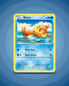 Buizel from the Flashfire set is a common Pokémon card numbered 28. It features 60 HP and a straightforward Water Gun attack. This card offers a simple yet dynamic addition to any collection.